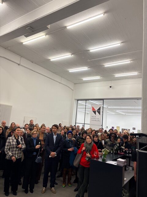 Vielen Dank, dass so viele Kunstenthusiasten die Eröffnung am 23.01.2026 im Kunstverein mit uns gefeiert haben! Es war ein großer Erfolg: mehr als 650 Besucher*innen kamen allein zum Start! Toll, dass Kultursenator Dr. Carsten Brosda so pointiert gesprochen hat. Auch unser Gründungsvorstand Dr. Hans Jochen Waitz hat mit seinen Anekdoten zur Vereinsgeschichte für Schmunzler gesorgt. Unser Dank gilt auch Kunstvereinsdirektor Milan Ther, der es ermöglicht hat, dass die Reisestipendiat*innen Simone Kessler, Nicholas Mboya, Katja Pilipenko, Mohammad Poori und Anna Stüdeli nach 20 Jahren erstmals wieder im Kunstverein ausstellen konnten. Ergänzt wurde die Schau durch „40 Jahre Neue Kunst in Hamburg“ – eine Präsentation von Arbeiten ehemaliger Reisestipendiat*innen im Erdgeschoss des Kunstvereins. Dazu sorgten die ehemaligen Stipendiaten Thomas Baldischwyler und Matthias Meyer als DJs für coolen Sound.